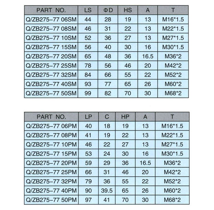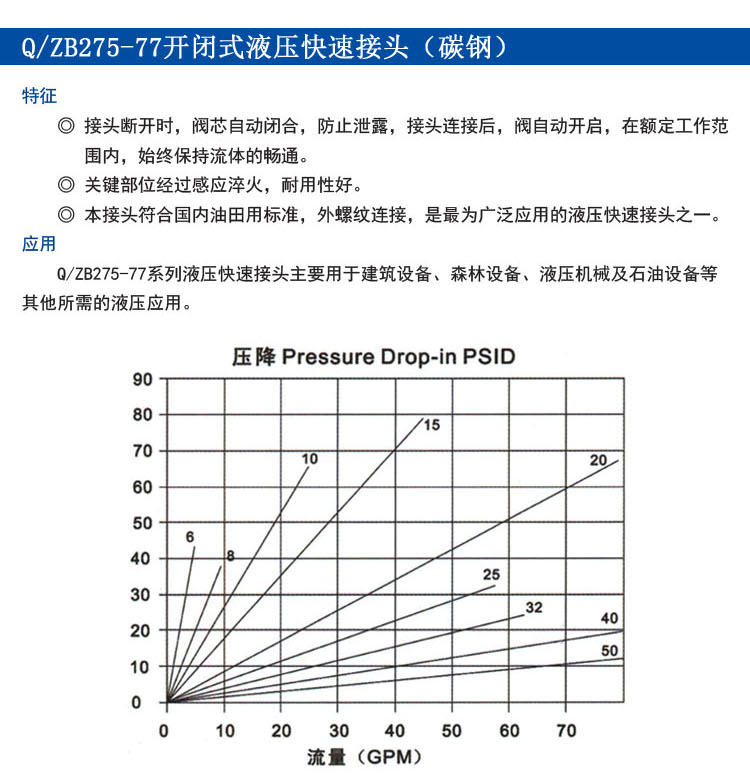 Q/ZB275-77開閉式液壓快速接頭(碳鋼)