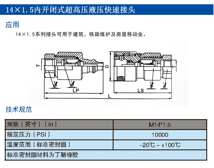 鐵路專用KJ開(kāi)閉式液壓快速接頭
